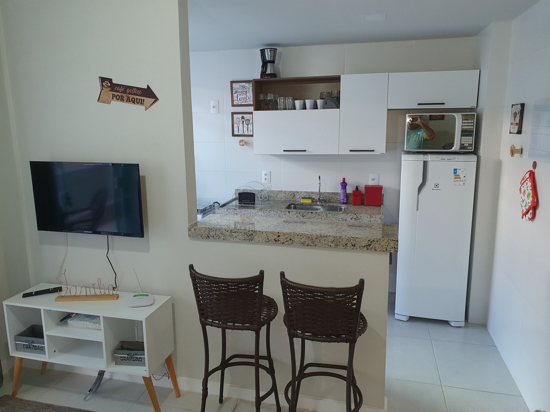 O apto possui uma estrutura muito boa que me atendeu muito bem para trabalhar.