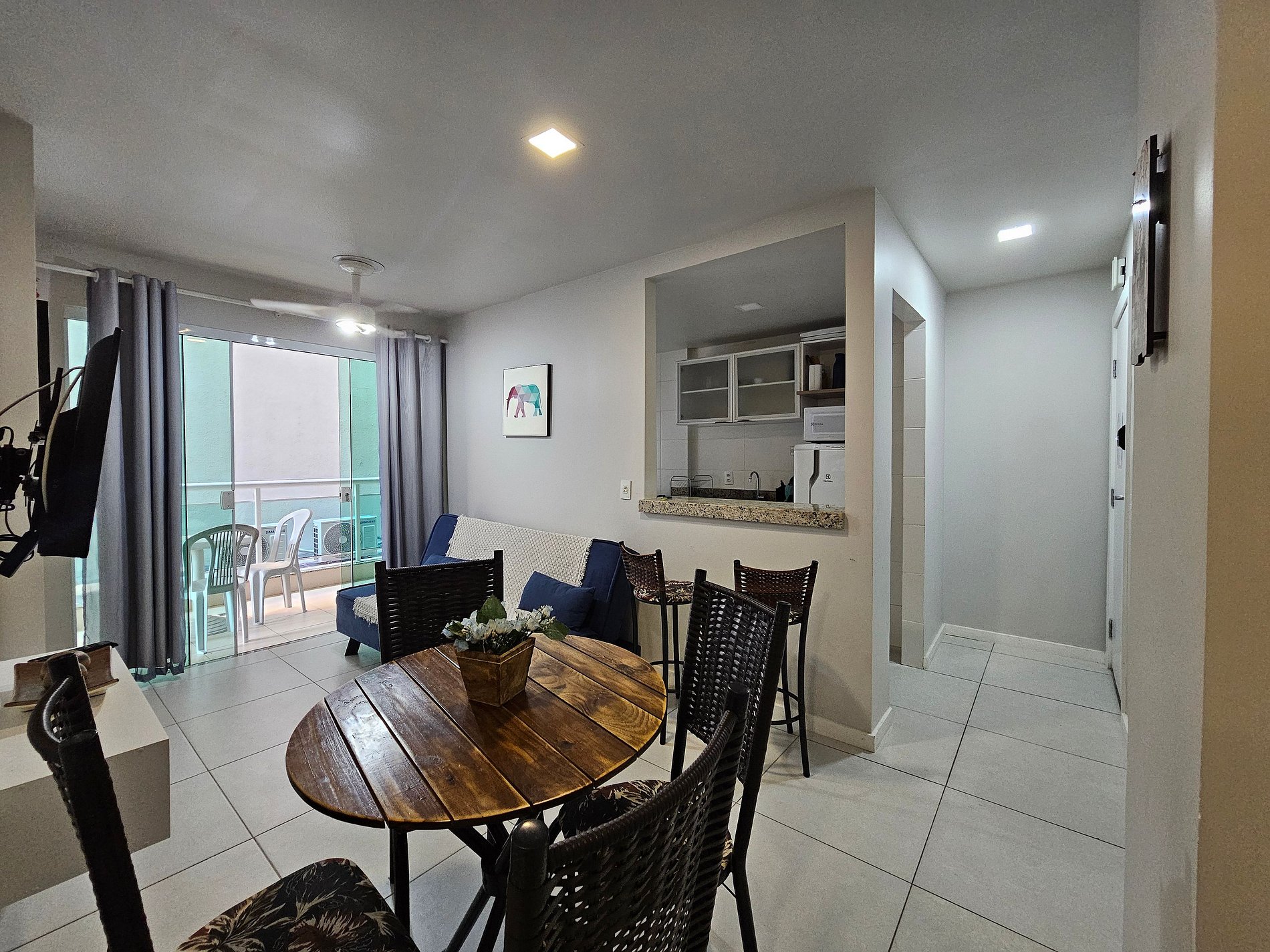 Fica a três minutos de caminhada da praia do Forte, na sua parte central. O apartamento tem vaga de garagem coberta e portão automatizado com controle remoto para o hóspede, e portaria com porteiro eletrônico. A cozinha é completa, com todos os itens necessários para preparar aquela deliciosa comida, seja no café da manhã, almoço ou jantar. Temos todos os eletrodomésticos básicos de cozinha. Ainda conta com uma deliciosa varanda, com mesinhas e cadeiras. Seja para confraternizar ou relaxar no pós praia.