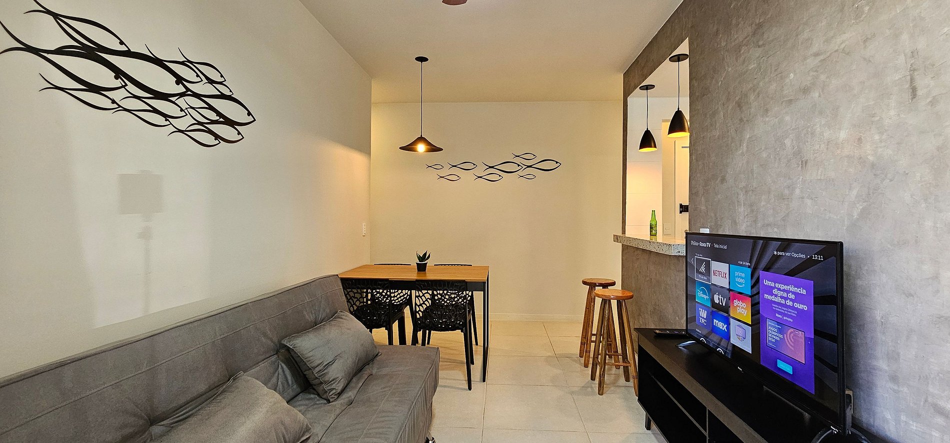 você e sua família aproveitem Cabo Frio com conforto e estilo. Localizado na segunda quadra da deslumbrante Praia do Forte, próximo a tudo. O apartamento é totalmente equipado, incluindo uma cozinha nova, Smart TVs no quarto e na sala, ar-condicionado na suíte e dois banheiros com chuveiros. Dispõe de Internet banda larga Wi-Fi e uma vaga de garagem inclusa no valor da hospedagem.